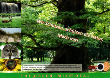 1000 SCHÜTZEN - 1000 BÄUME und jeder Baum trägt ein biologisch abbaubares Namensschild.Nein, Wir kleben uns nicht auf die Straße, wir packen an und pflanzen 1000 Bäume in Deutschland. Unter den Motto: THE „ GREEN-MIKE“ DEAL, kann jeder Schütze, jeder Jäger und jeder der mitmachen will, mitmachen. Zusammen mit Forstamt und Baumschulen werden wir das grüne Projekt „GRENN-MIKE“ umsetzen.Viele deutsche Wälder sind in den letzten Jahren durch Trockenheit und Borkenkäfer stark betroffen, z. B. der Harz, der Thüringer Wald, der Schwarzwald und andere. Hier müssen wir ansetzen und nicht nur mit Monokulturen.Ich weiß, dass viele von euch Natur- und Tierfreunde sind, dass hört man aus vielen Gesprächen raus. Wir brauchen die Natur.Packen wir es an. Jeder der die neue Aktion „GREEN-MIKE“ ab 20,- € unterstützt (oder 4 Mike`s hat = 20,- €) bekommt ein Namensschild an seinen Baum. Zeigen wir, die Ältere Generation“ der „letzten Generation“, wie es gemacht wird.